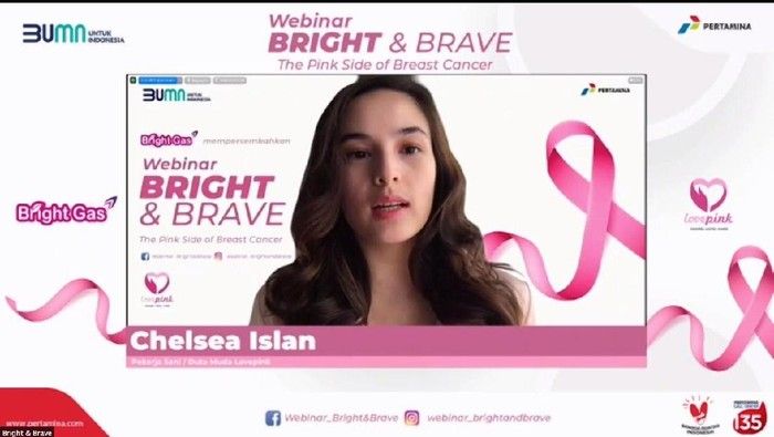 Selain aktif di layar, Chelsea juga dikenal karena kepeduliannya pada isu sosial. Ia terlibat dalam komunitas Love Pink, sebuah organisasi yang menekankan pentingnya deteksi dini kanker payudara di kalangan perempuan muda.