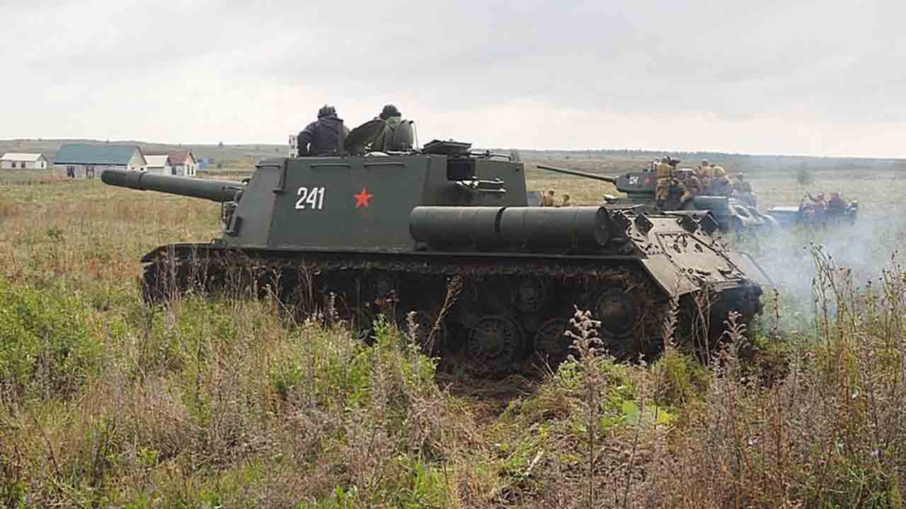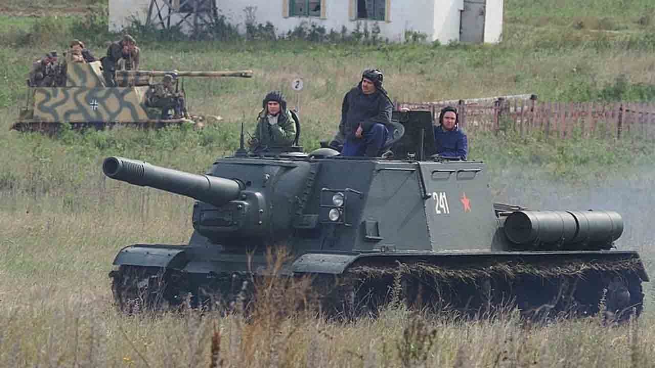 Dalam rekonstruksi peristiwa tahun 1945, penonton dapat menyaksikan langsung aksi legendaris tank T-34-85 dan artileri swagerak ISU-152 yang perkasa.