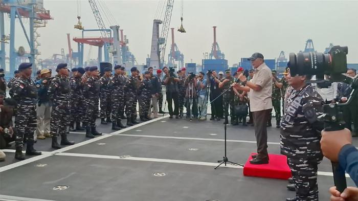 Dalam upacara tersebut, Menteri Pertahanan RI Sjafrie Sjamsoeddin, Panglima TNI Jenderal Agus Subiyanto, Kapolri Jenderal Polisi Listyo Sigit Prabowo, Kepala Staf Angkatan Laut (KSAL) Laksamana Muhammad Ali beserta para pejabat lainnya memberikan hormat saat kapal sandar di dermaga.