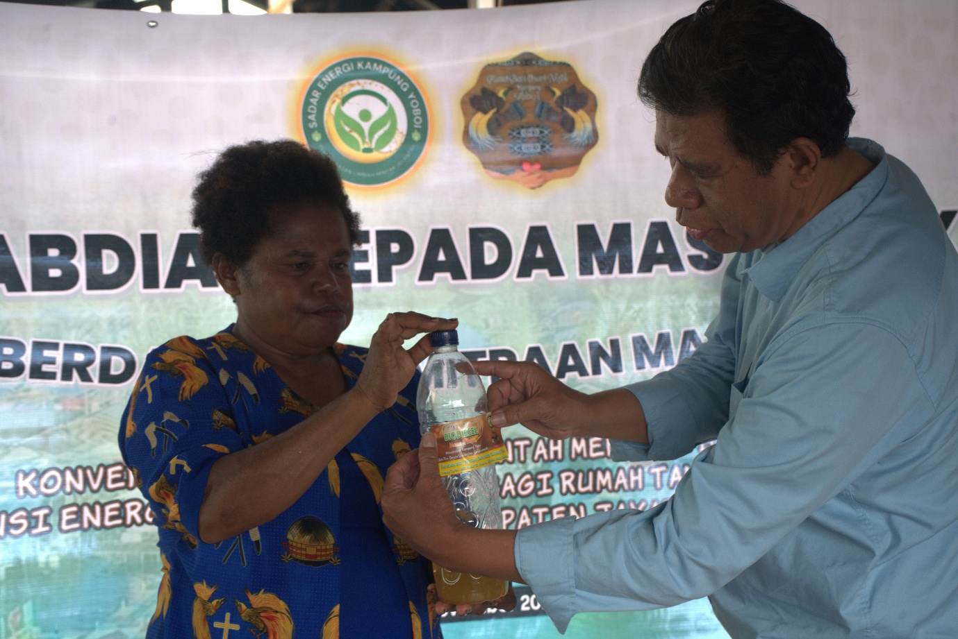 “Minyak jelantah yang kita buang sembarangan akan mencemari air dan tanah. Kalau dipakai lagi untuk menggoreng, bisa merusak kesehatan. Padahal dengan teknologi sederhana, limbah ini bisa jadi biodiesel yang bermanfaat, tidak hanya untuk dapur, tapi juga untuk menggerakkan perahu nelayan. Harapan kami, masyarakat Yoboi bisa mandiri energi sekaligus menjaga lingkungan,”jelasnya.