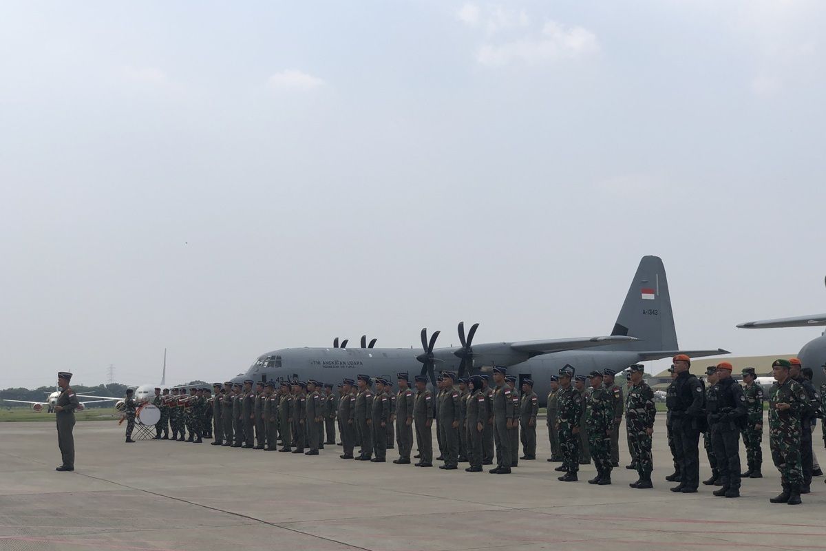 Kepala Staf Angkatan Udara (KSAU) Marsekal TNI M. Tonny Harjono bersama sejumlah pejabat TNI, Kementerian Pertahanan (Kemhan), Kementerian Luar Negeri (Kemlu), dan Baznas menyambut langsung kepulangan satgas tersebut di Pangkalan Udara (Lanud) TNI Halim Perdanakusuma, Jakarta Timur (Jaktim). Total ada 3 pesawat angkut berat Hercules TNI AU.