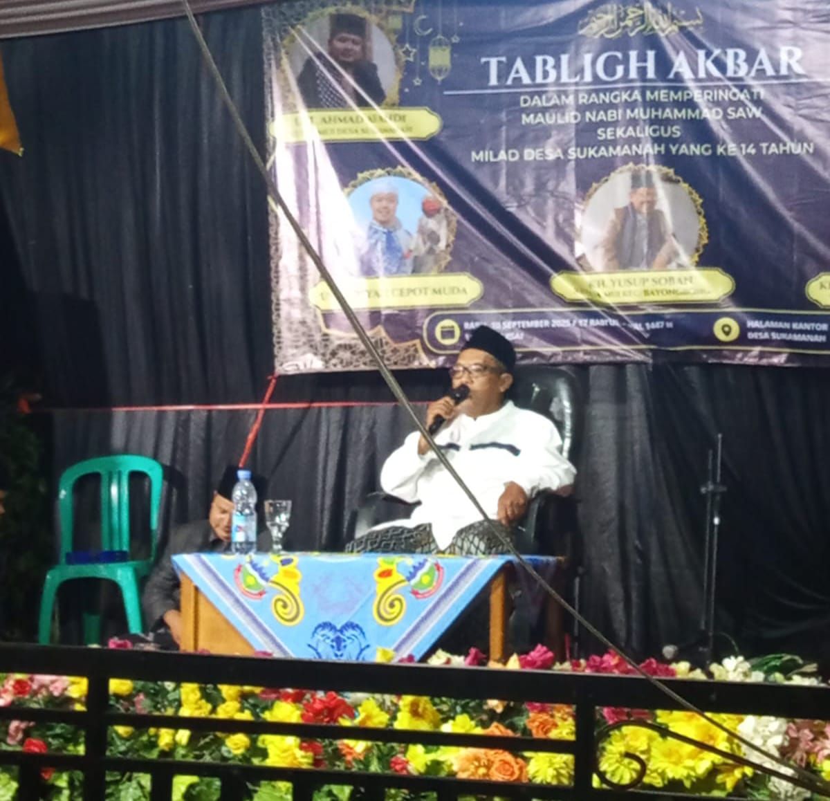 “Dalam kegiatan ini, kami bersama para tokoh agama dan seluruh warga sepakat merayakan Milad Desa Sukamanah sekaligus menyambut Maulid Nabi Muhammad SAW melalui Tablig Akbar. Semoga kegiatan ini membawa keberkahan dan semakin mempererat tali silaturahmi masyarakat,” ungkapnya.