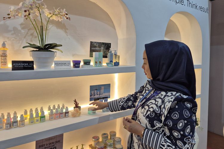 Salah satu pengunjung Booth ASIASKINLAB di IFBEX 2025, Grace Natalie, warga Surabaya, mengaku tertarik dengan bisnis skincare. Jejeran produk kecantikan membuat Grace dan dua temannya melirik ASIASKINLAB.