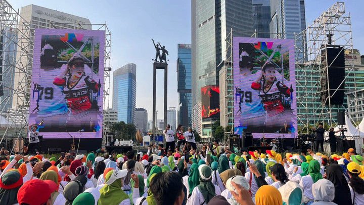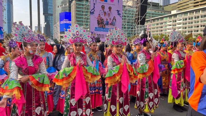 Pagi ini, kawasan Bundaran HI, Jakarta Pusat, terlihat berbeda. Kilauan warna-warni memancar. Orang-orang berkumpul dengan pakaian yang mencuri pandang.