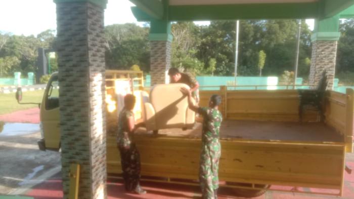 Personel Satgas tampak bekerja sigap menata tenda, kursi tamu, serta memastikan sarana dokumentasi dan perlengkapan lainnya dalam kondisi siap digunakan.