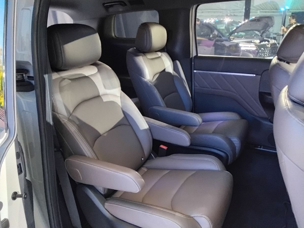 Pada kursi baris kedua menggunakan model captain seat yang memberikan ruang pribadi lebih lega bagi penumpang, dan untuk mengaturnya sudah dibekali electrick seat serta ada sandaran tangan individual. Ini tidak hanya meningkatkan kenyamanan, tetapi juga mempermudah akses menuju kursi baris ketiga.