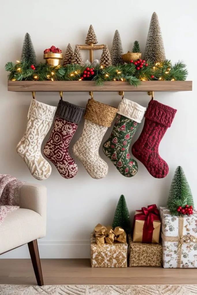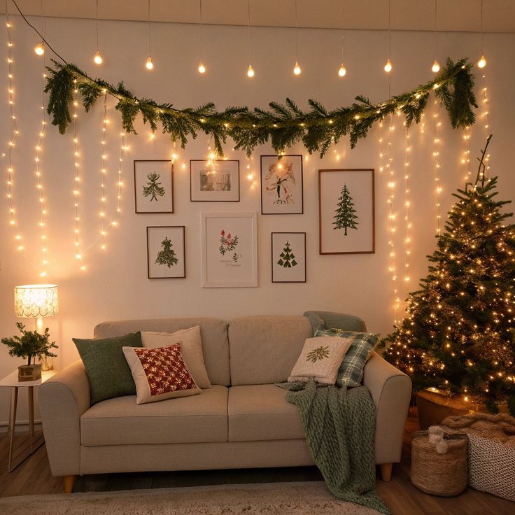 Pohon Natal juga dapat dikreasikan menjadi hiasan dinding. Anda dapat membuatnya dengan menempelkan rangkaian ornamen, pita, atau ranting yang disusun menyerupai bentuk pohon pada dinding ruangan. Hiasan ini cocok untuk rumah yang ingin tetap meriah meski memiliki area yang terbatas.