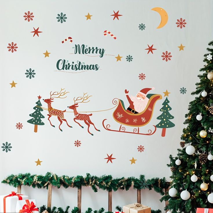 Stiker dinding bertema natal menjadi pilihan dekorasi yang praktis karena mudah untuk dipasang. Setelah perayaan Natal berakhir, stiker ini tetap dapat digunakan sebagai hiasan ruangan.