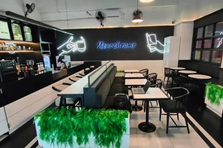 Monochrome Coffee Shop hadir dengan konsep minimalis yang modern dan bersih. Sesuai namanya, kafe ini didominasi nuansa warna monokrom yang memberi kesan tenang dan nyaman. Tempat ini cocok bagi pengunjung yang ingin menikmati kopi dengan suasana santai tanpa terlalu ramai.