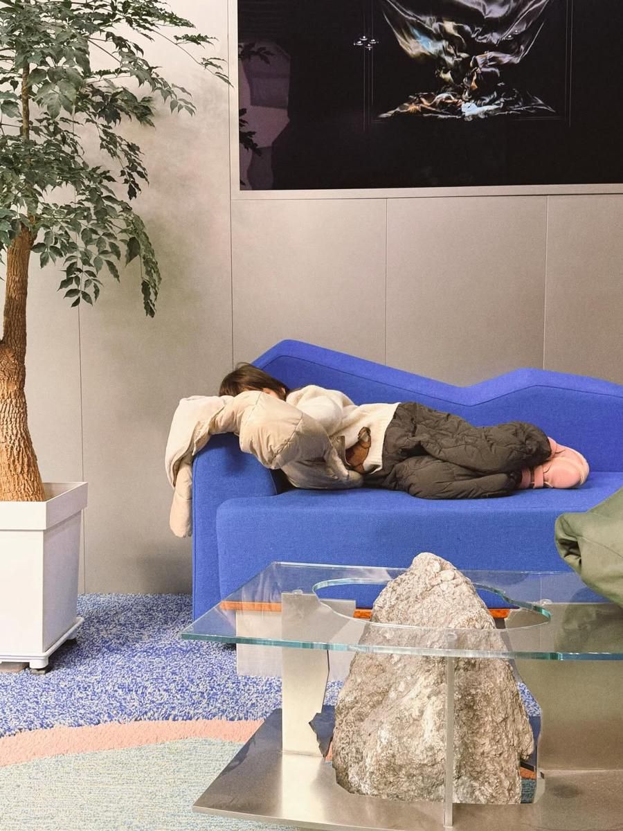12. Raisa pun mengabadikan momen saat sang putri tertidur dengan nyenyak di sebuah sofa