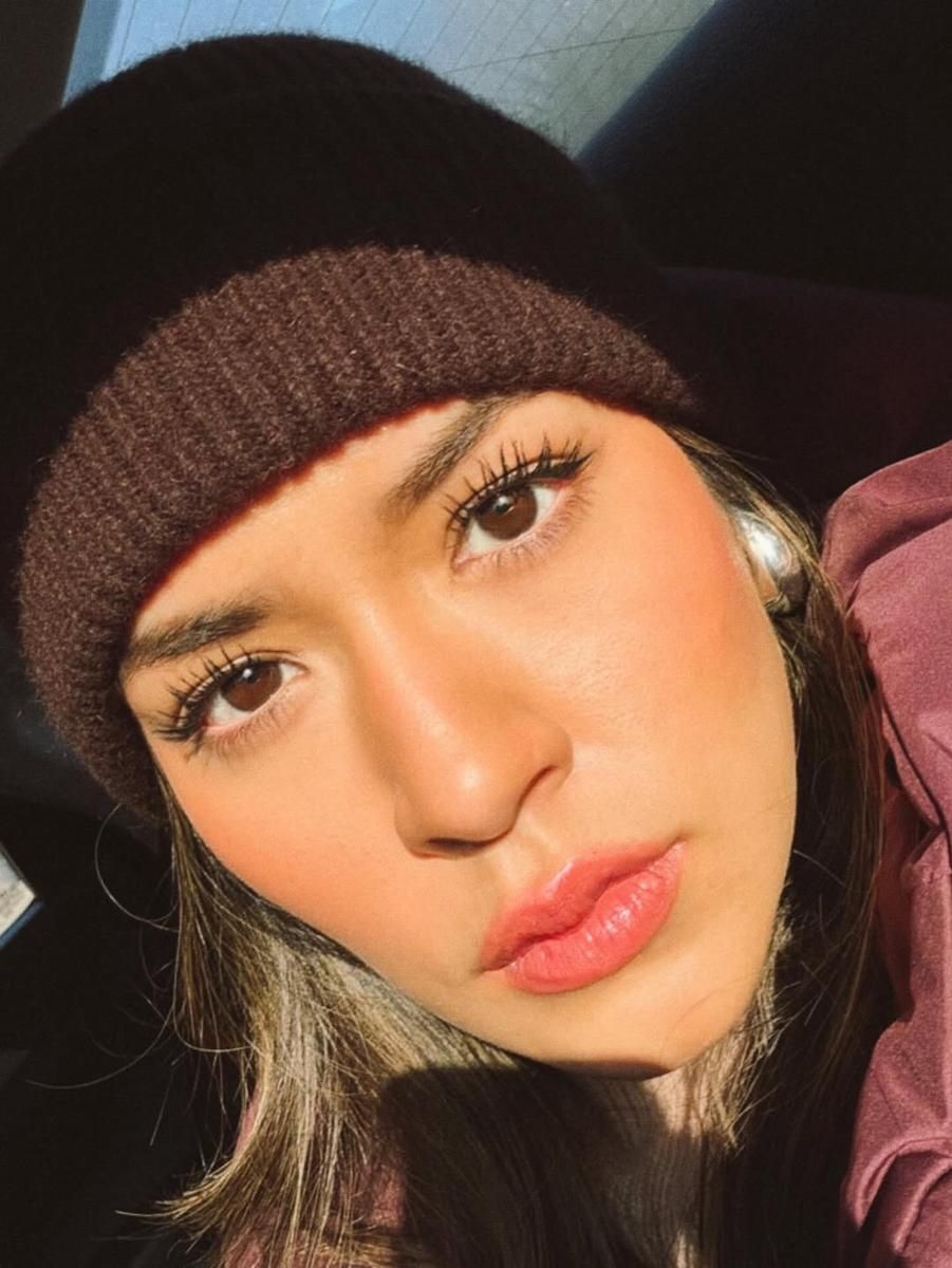 10. Raisa dengan riasan naturalnya terlihat begitu memesona. Ia terlihat mencoba beberapa jenis topi hangat