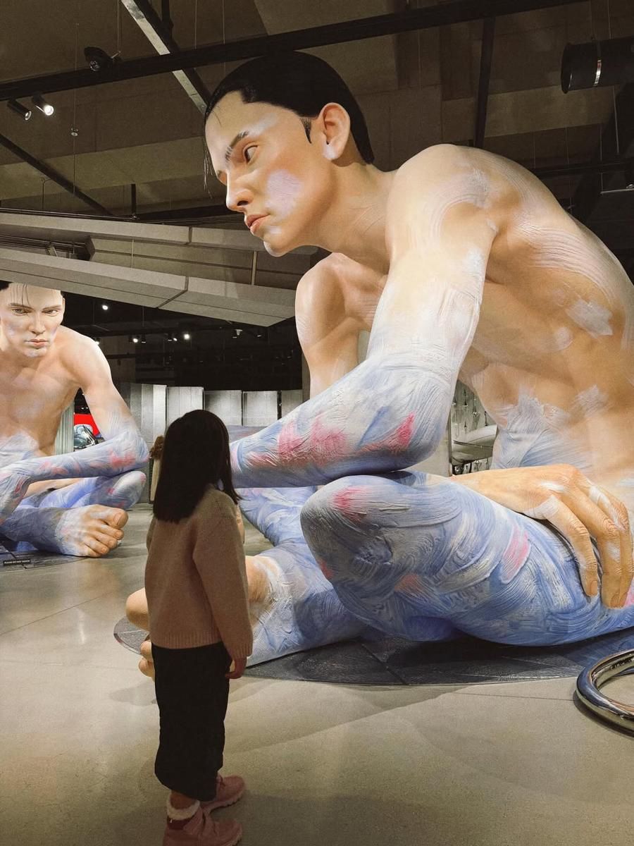 5. Ada banyak karya seni berukuran besar di sini. Zalina terlihat begitu takjub dengan karya seni tersebut