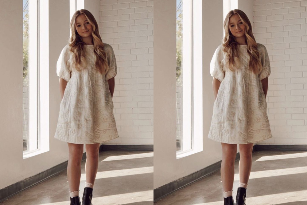 Untuk remaja perempuan, mini dress krem dengan detail tekstur dan puff sleeve ini memberi kesan lembut dan effortless. Potongan A-line membuatnya nyaman dipakai seharian, sementara boots hitam memberi sentuhan tegas yang menyeimbangkan keseluruhan tampilan.