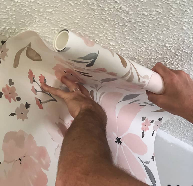 4. Tempelkan wallpaper dari bagian paling atas, lalu turunkan perlahan sambil memastikan posisinya tetap lurus.