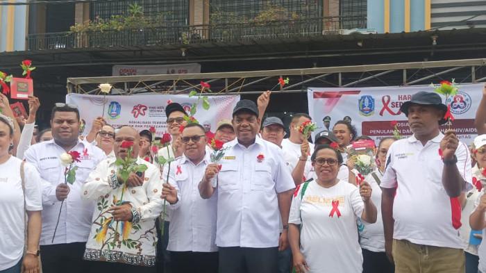 Hari AIDS se-Dunia,Pemkab Jayapura Edukasi Tingginya Kasus HIV dengan Membagikan Bunga dan Pita