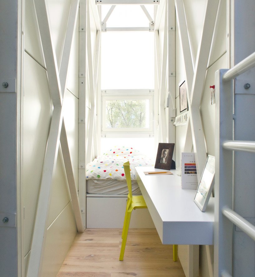Diogene memiliki ruang-ruang yang bisa dilipat untuk tidur, bekerja, atau menyimpan barang.