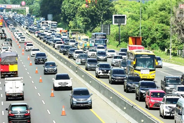 Lalu lintas di jalan tol Japek mulai padat, Jasa Marga terapkan contraflow mulai dari KM 70 - KM 47 arah Jakarta