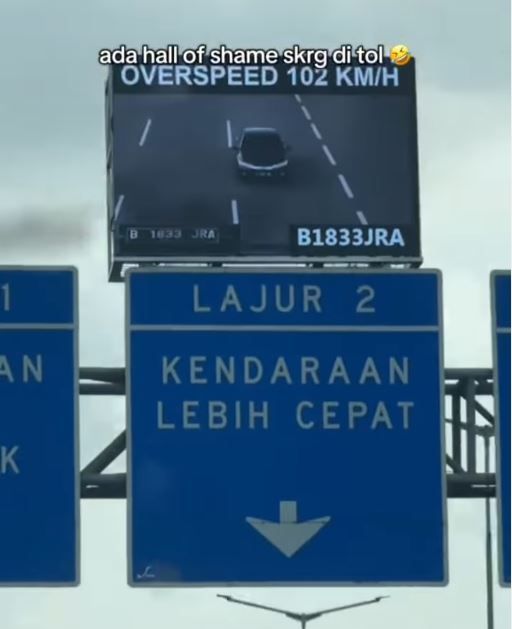 Pelaku pelanggaran kecepatan di jalan tol langsung direkam dan difoto lalu ditampilkan di layar besar seperti di tol JORR
