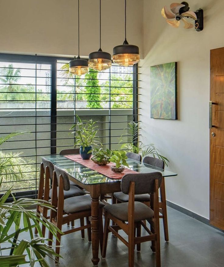 Bagi penyuka gaya tropis, tanaman indoor berukuran besar seperti monstera, ficus lyrata, atau palm menjadi elemen yang sangat cocok. Tanaman tinggi membantu mengisi ruang vertikal tanpa membuat ruangan terasa penuh.