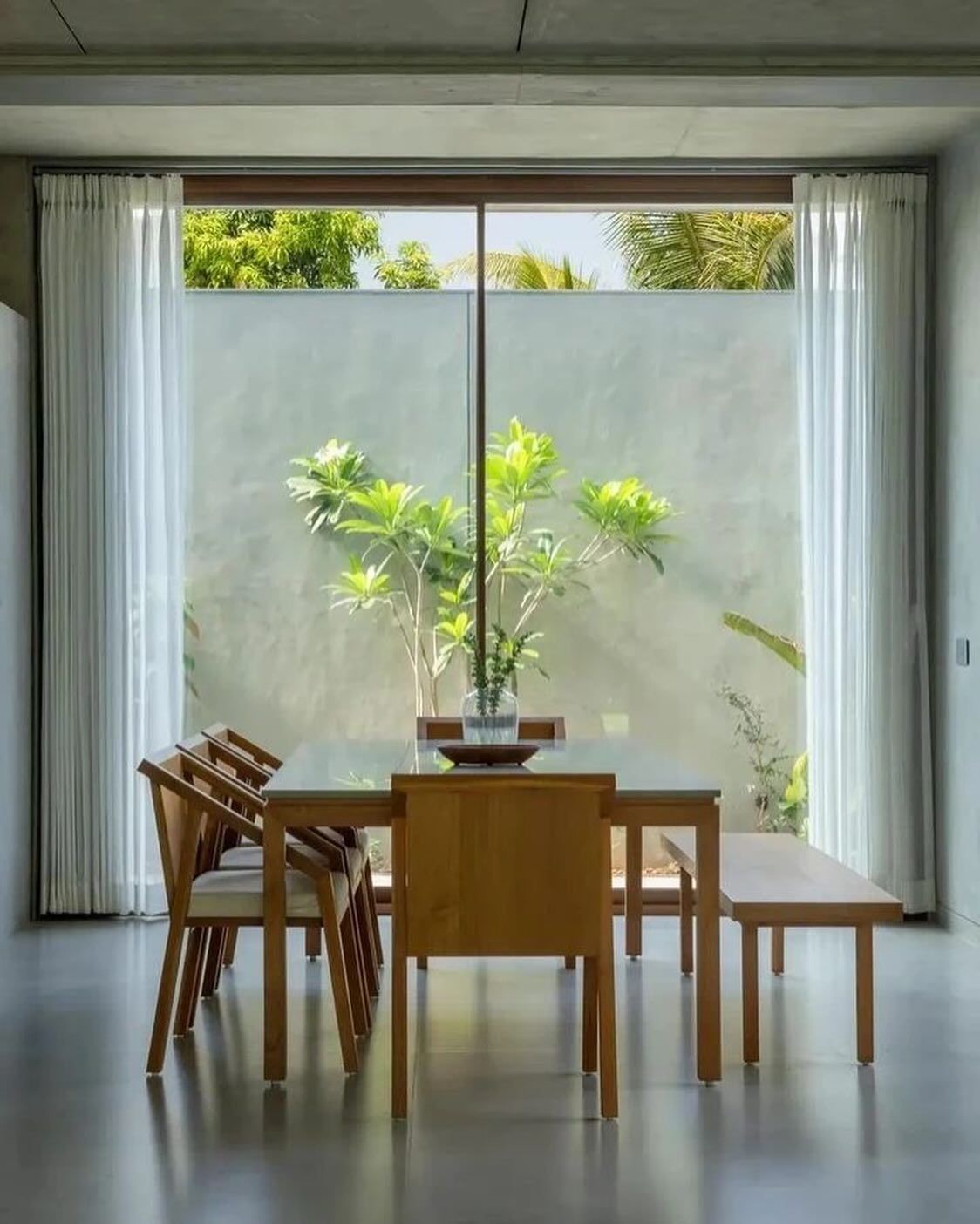 Salah satu inspirasi paling populer untuk rumah tinggi 3,5 meter adalah konsep jendela tinggi dari lantai hingga mendekati plafon. Selain memperindah tampilan fasad, jendela tinggi memperbesar volume cahaya alami dan menciptakan hubungan visual yang kuat antara interior dan taman.