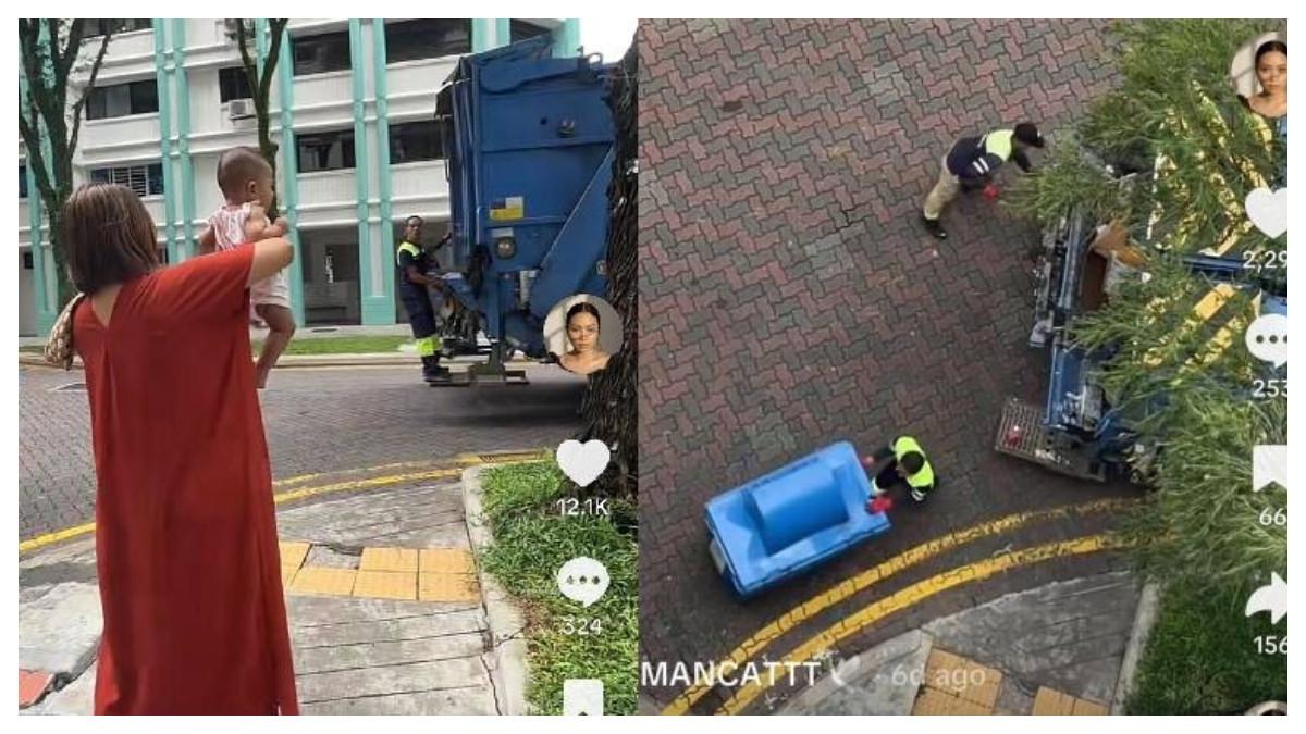 Dalam video yang diunggah pada 11 Desember, pengguna TikTok sekaligus kreator konten bernama Humancatt tampak menggendong putrinya yang berusia tujuh bulan saat truk sampah yang dikemudikan sang ayah melintas di sekitar lingkungan tempat tinggal mereka.