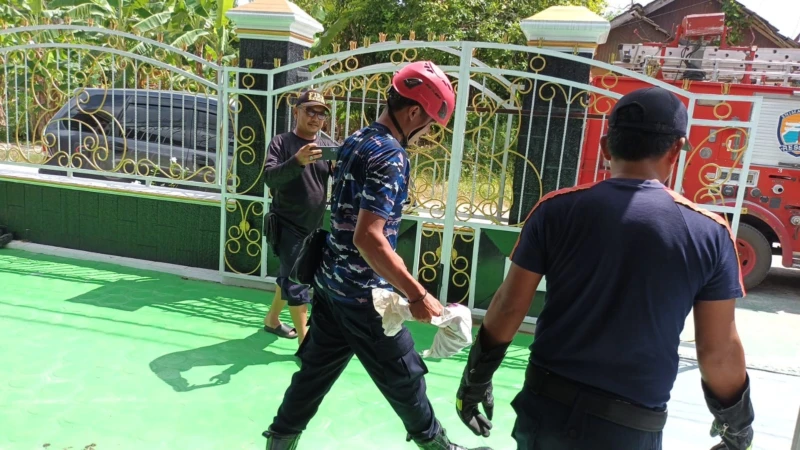 Karena ketakutan, pemilik rumah langsung menutup pintu kamar dan segera melaporkan kejadian tersebut ke Tim Rescue Damkar.