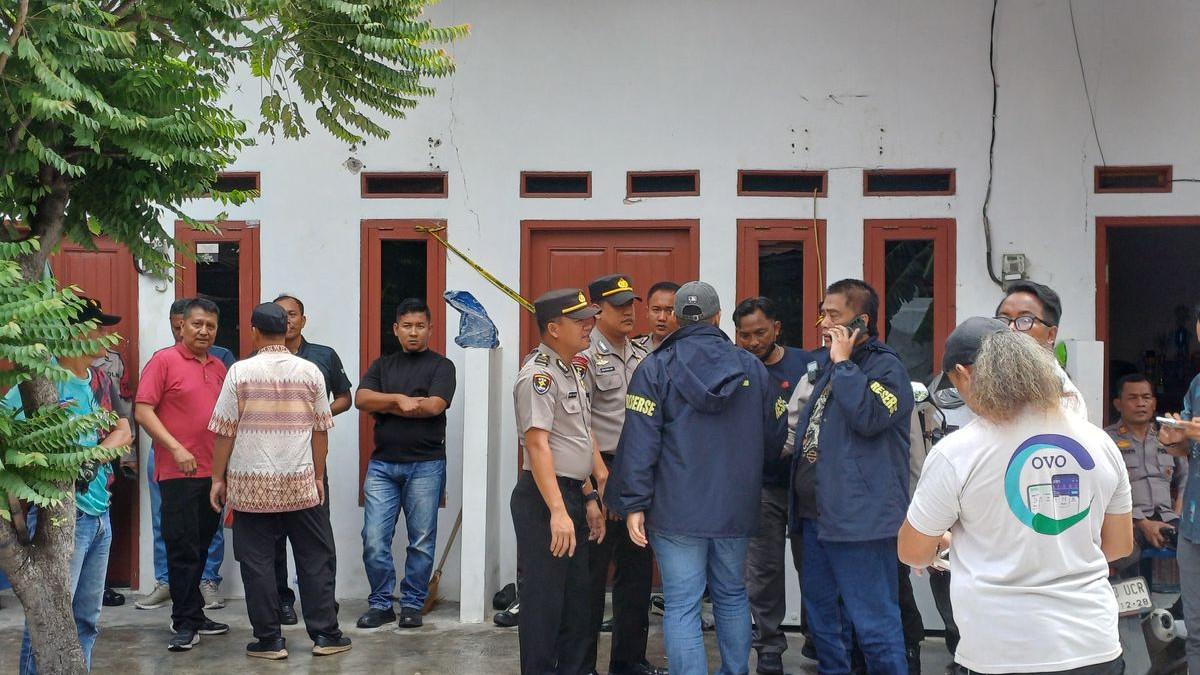 Kini, garis polisi melintang di depan rumah kontrakan Nomor 108 tersebut.