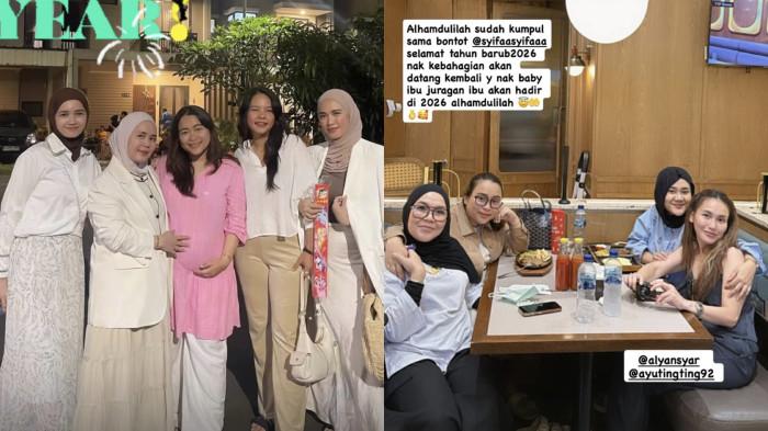 “Alhamdulilah sudah kumpul sama bontot @syifaasyifaaa selamat tahun baru 2026 nak kebahagian akan datang kembali y nak baby ibu juragan ibu akan hadir di 2026 alhamdulilah, “ tulis Umi Kalsum dilansir menggapaiasa.commelalui Instagram @mom_ayting92_, Jumat (2/1/2026).