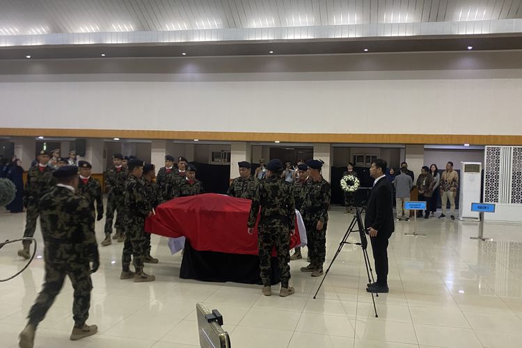 Tiba di Jakarta, peti jenazah Deden Maulana diangkat rekan pegawai KKP berseragam loreng