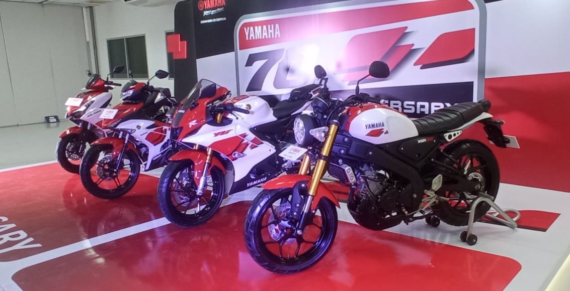 Yamaha memasarkan rilisan khusus 70th Anniversary livery MX King 150 seharga Rp 28.325.000*, R15M Connected/ABS Rp 46.600.000*, Aerox Alpha Turbo Rp 39.950.000* dan XSR 155 Rp 39.665.000*.