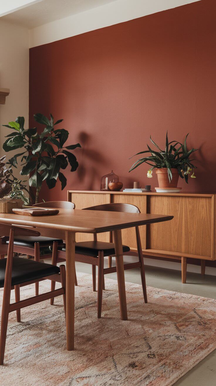 Nuansa tanah seperti terracotta semakin diminati karena memberi karakter hangat dan artistik. Warna ini cocok untuk accent wall atau ruang dengan pencahayaan natural yang baik. Terracotta menghadirkan kedalaman visual dan membuat ruang terasa lebih hidup, terutama jika dipadukan dengan tekstur natural seperti linen, kayu, dan batu alam.