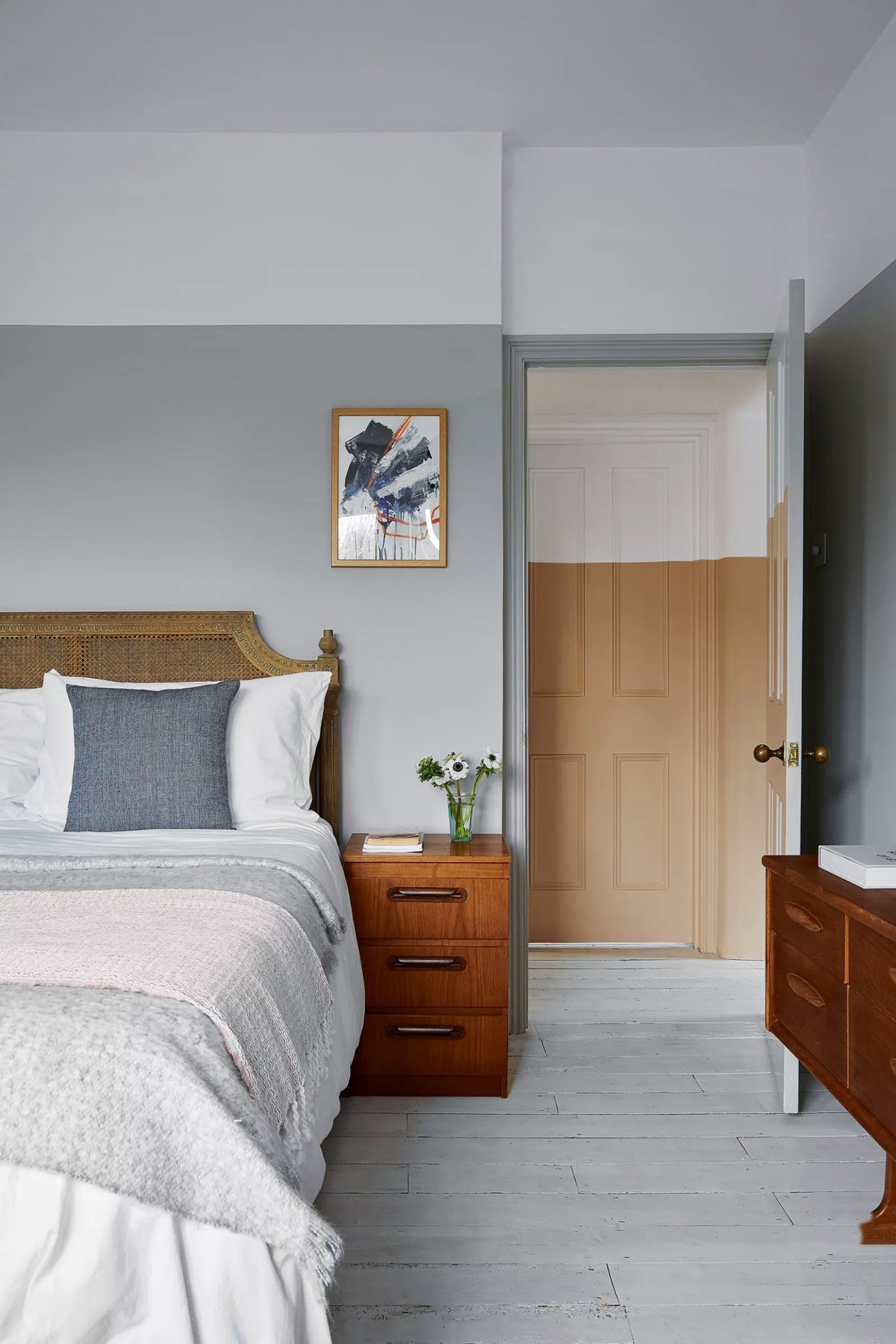 Anda juga bisa bermain dengan teknik dua tone wall, yaitu memadukan dua warna dalam satu dinding. Cara ini efektif memberi dimensi visual dan membuat ruang terasa lebih dinamis tanpa terlihat ramai.