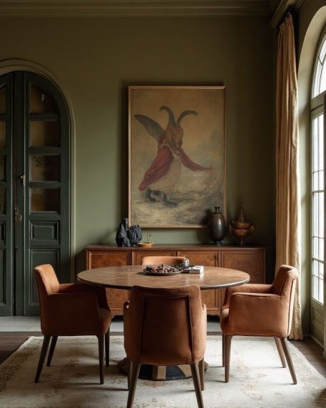 Hijau zaitun lembut membawa nuansa alam ke dalam rumah. Warna ini memberikan efek menenangkan sekaligus sophisticated. Cocok digunakan di ruang keluarga, kamar tidur, atau area santai untuk menciptakan atmosfer yang segar namun tetap hangat. Dipadukan dengan warna krem atau putih tulang, olive green terlihat sangat modern.