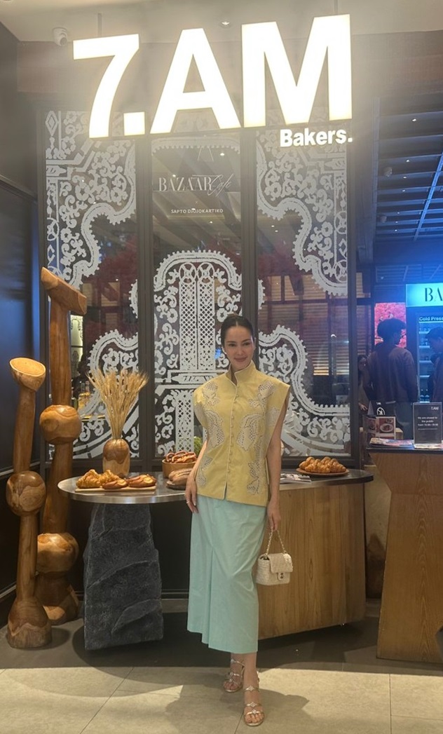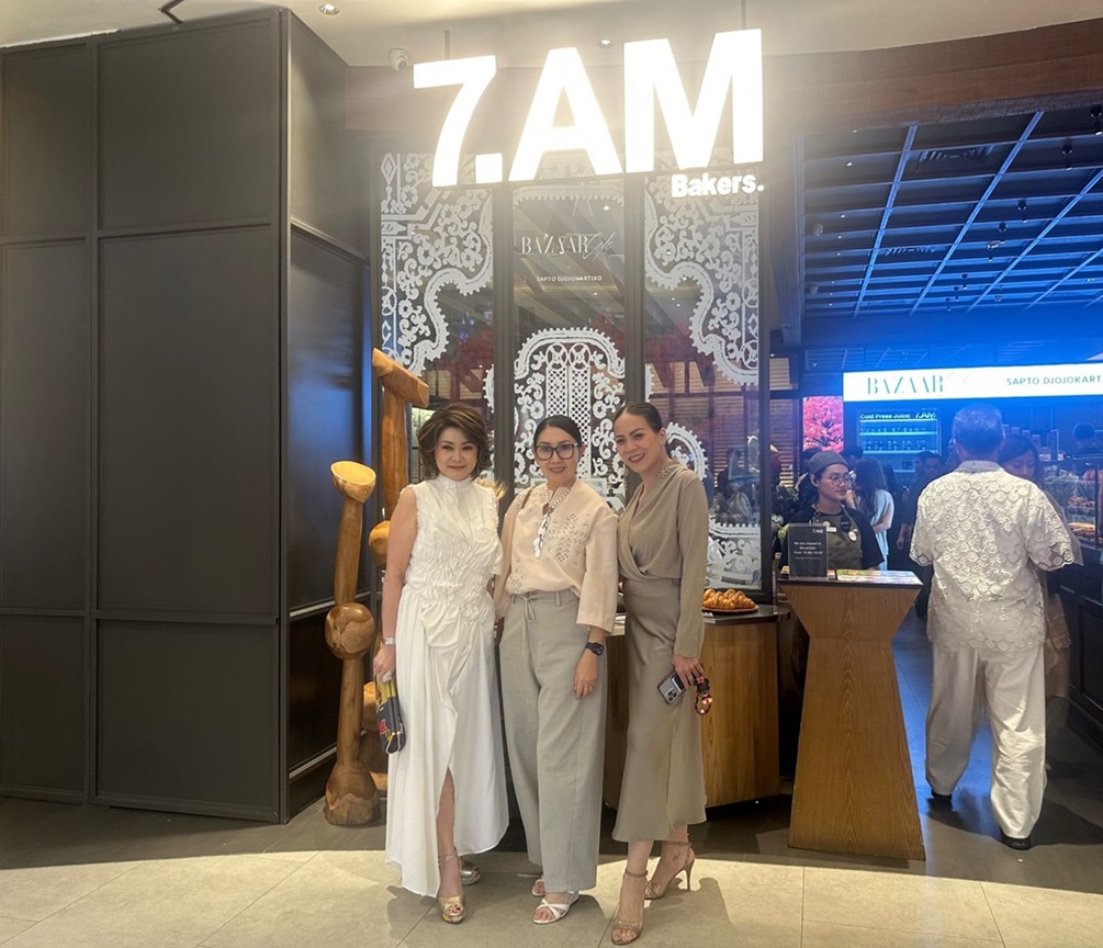 Ria Lirungan sebagai editor-in-chief Harper’s Bazaar Indonesia bersama dengan Felix Tjahjadi selaku Creative Director Bazaar Cafe By 7.AM Bakers X Sapto Djojokartiko berhasil menyoroti desain pola khas Sapto Djojokartiko di setiap sudut cafe yang menyatu dengan suasana yang hangat.
