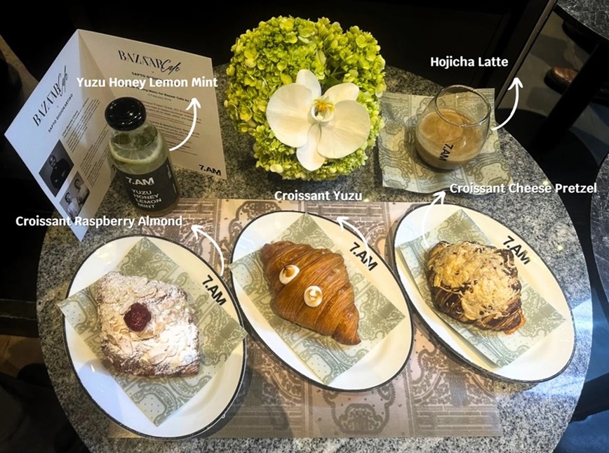 Kolaborasi ini dilengkapi dengan cita rasa khusus yang hadir melalui menu andalan dari tiga chef, Ryan Kim, Rachel Thahja, dan Maxime. Kreasi menu ekslusif ini terdiri dari hidangan, Croissant Cheese Pretzel, Croissant Yuju, Raspberry Almond Croissant, Croque Monsieur Prawn Toast, Raspberry Granita & Matcha Curd, Hojicha Latte, serta Yuzu Honey Lemon Mint.